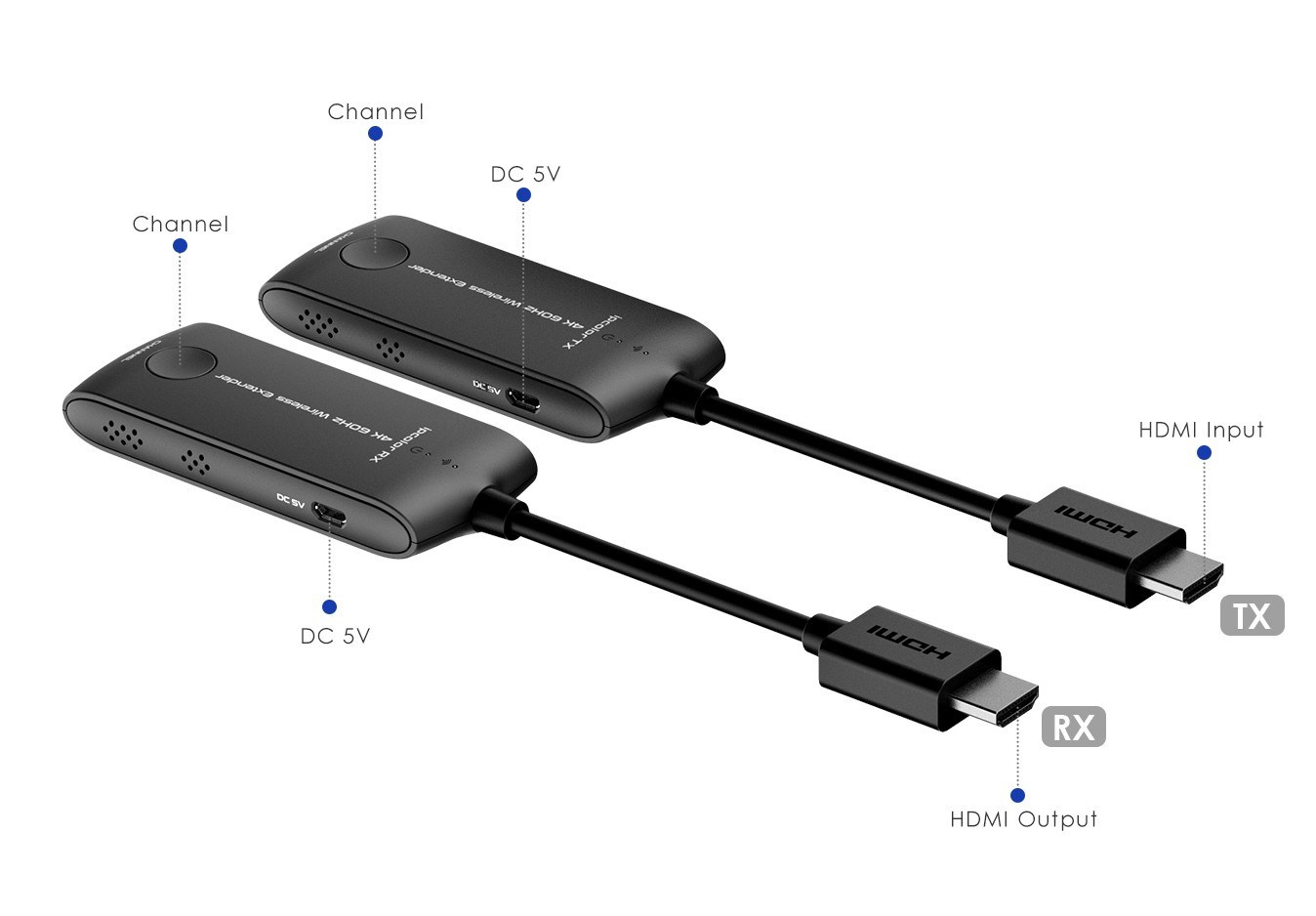 PremiumCord 4K@60Hz HDMI Wireless extender na 20m - Bezdrátový vysílač a přijímač signálu HDMI pro spojení na 20m - Poporuje bezdrátový přenos rozlišení 4K@60Hz a Full HD 1080p na vzdálenost až 20m - Maximální datový tok: 18Gbps - Wifi frekvence: 5 až 5,8GHz - Podporuje rozlišení obrazu: 4K@60Hz/50Hz/30Hz, 2K@60Hz/50Hz/30Hz, FULL HD 1080p@50/60Hz, 1080i@50/60Hz, 720p@50/60Hz - Podporuje:3840x2160@24/30/50/60Hz (YUV 4:4:4, YUV 4:2:2 and RGB),1080P@50/60Hz, 720P@50/60Hz, 1920x1200@60Hz - Podporuje HDMI2.0 - Plně podporuje HDCP2.2 - Podporuje SSID párování - Audio formát PCM - Vysílač představuje malý dongl, který se zasune přímo do konektoru HDMI počítače, notebooku. Vysílač je napájen pomocí USB kabelu z USB portu. - Přijímač představuje malý dongl, který se zasune přímo do HDMI konektoru monitoru nebo projektoru. Přijímač je napájen pomocí USB kabelu z USB portu. - Jednoduchá montáž bez dalšího SW - Vstupní konektory: HDMI konektor vidlice - Výstupní konektory: HDMI konektor vidlice - Odezva menší než 150ms - Extender je napájen za pomoci přiložených USB micro kabelů, které se zasunou do USB portu nebo USB napájecího adaptéru .Extender může fungovat bez externího USB napájení, ale v případě výpadků obrazu nebo horšího zvuku, zapojte USB napájení, protože napájení z HDMI konektoru nepostačuje. - Vysílací a přijímací adaptéry mají krátký HDMI kabel pro snadné zapojení do počítače a zobrazovače nebo TV. - Vzdálenost přenosu závisí na skutečném prostředí. - Pracovní teplota: -20°C až 60°C - Vlhkost: 0-90% (nekondenzující) - Rozměry TX a RX: 40mm x 200mm x 15mm - Váha TX:40g, RX: 40g - Pouzdro černé plastové Pro zařízení je vhodné zajistit optimální podmínky pro přenos bezdrátového signálu: 1, Odstranit rušení signálu jiným bezdrátovým zařízením a odstranit překážky, které stojí signálu v cestě (kovové stěny , sklo, RF rušení apod. v cestě signálu) 2, Signál mohou rušit i vlivy vnějšího prostředí, jako je mikrovlnná trouba, bezdrátové myši a klávesnice., 3 Ujistěte se, že vysílací jednotka je minimálně 20 až 30 cm od zdi a je zhruba ve stejné linii jako přijímací anténa zařízení na druhé straně. Extender nemusí pracovat dobře ve specifických místech jako je např. suterén, tunel atp. Set se skládá - 1x vysílač - Transmitter - 1x přijímač - Receiver - 2x kabel USB - micro USB pro napájení přijímače a vysílače.