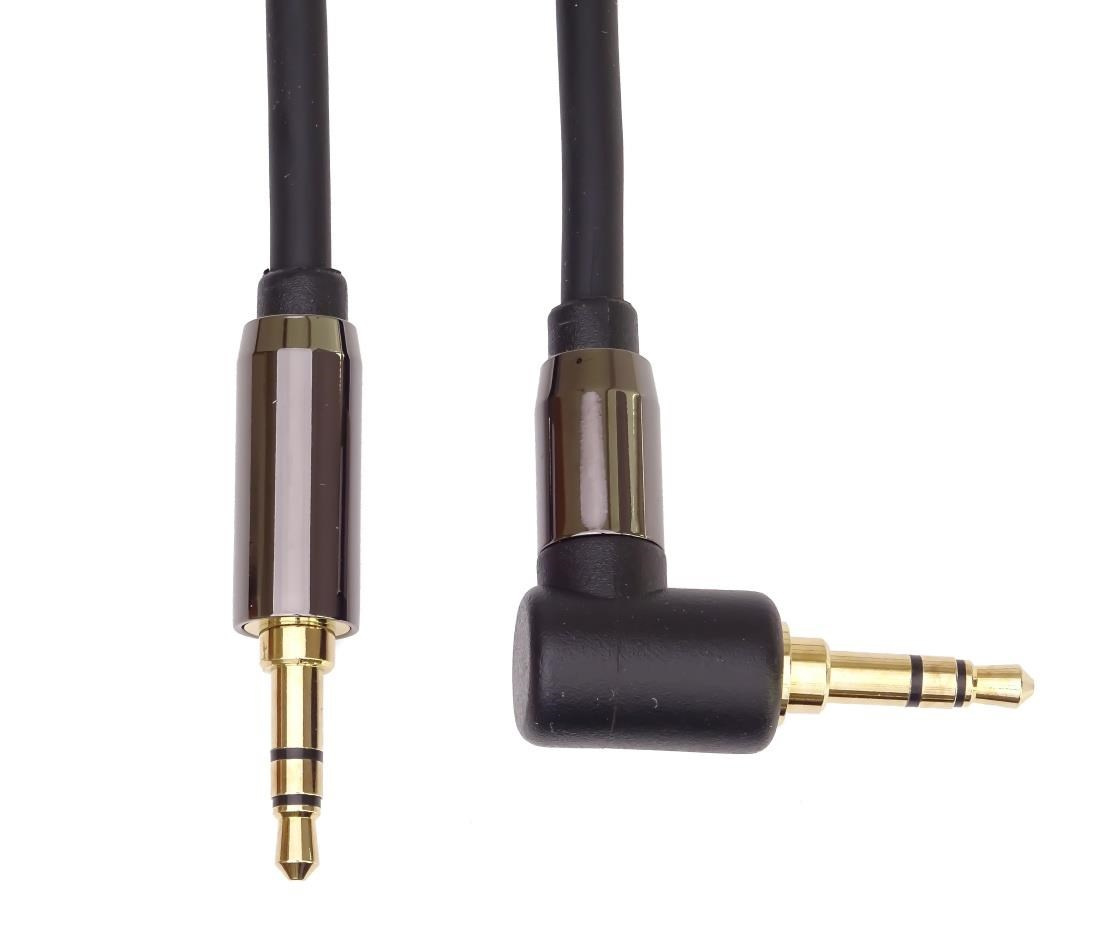 PremiumCord HQ stíněný kabel stereo Jack 3.5mm - Jack 3.5mm zahnutý 90° 3m