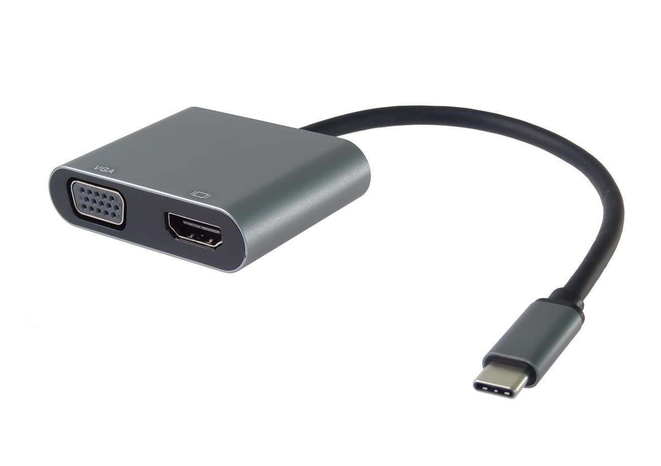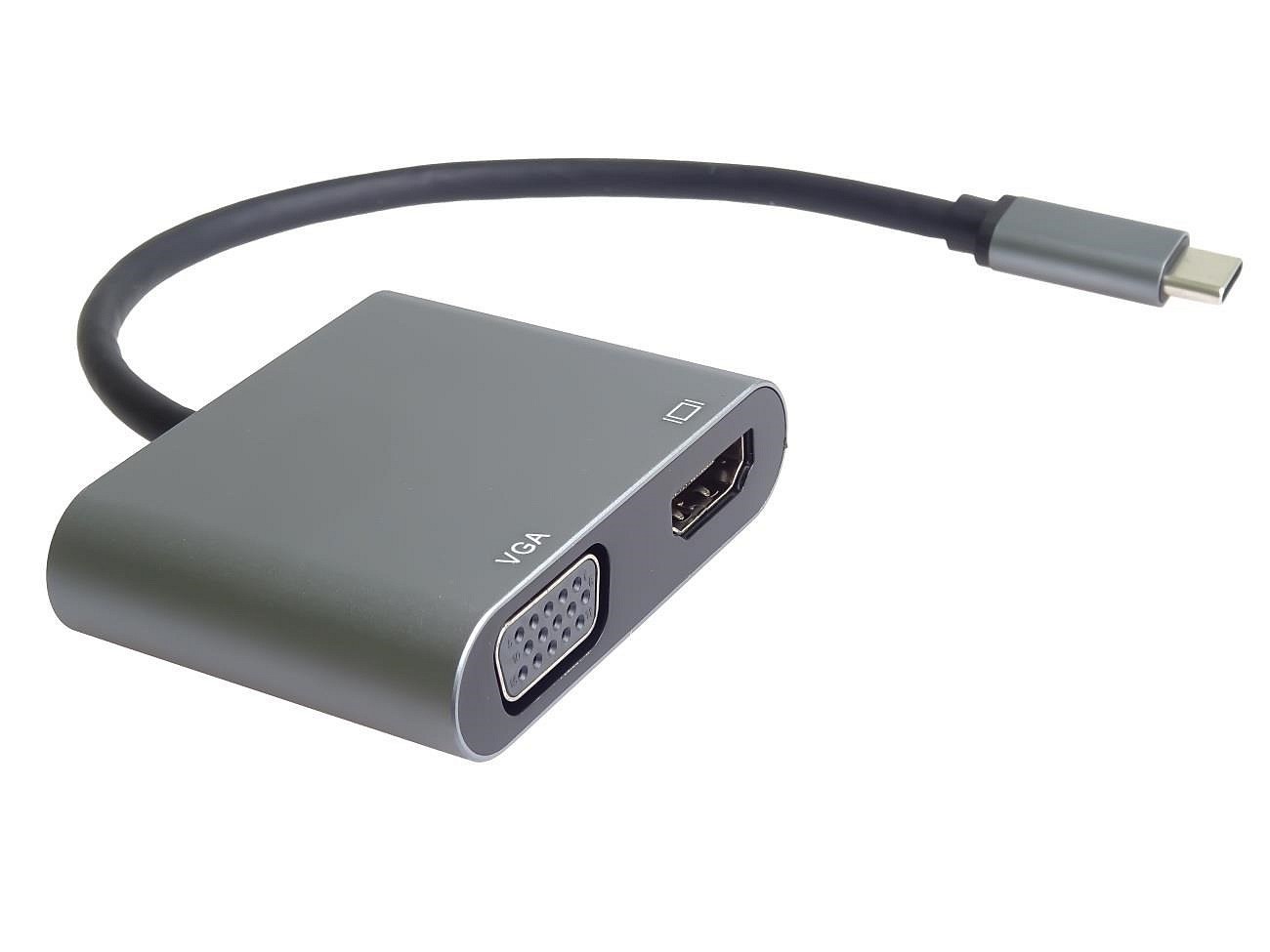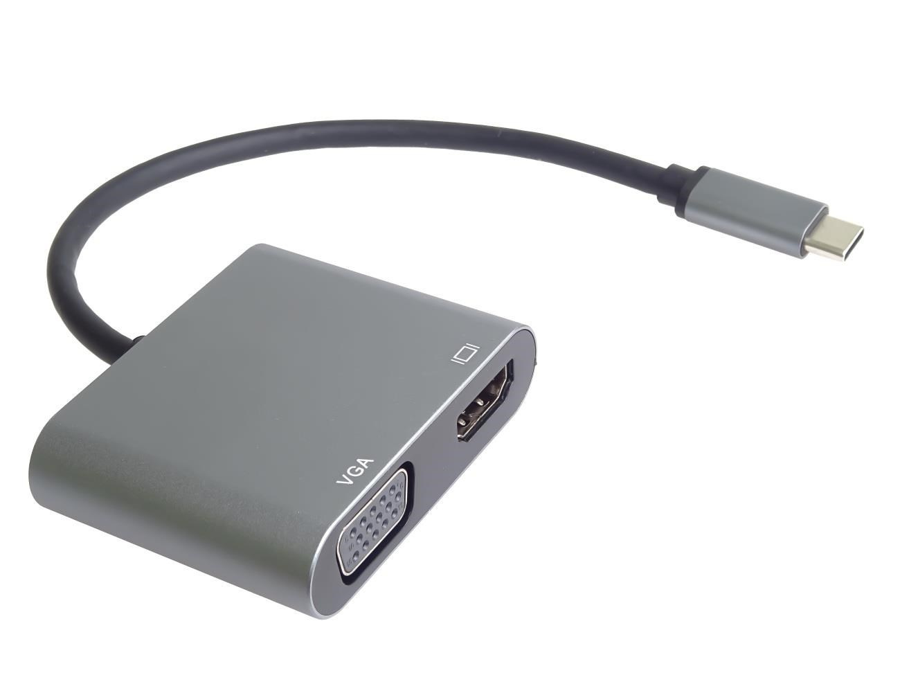Tento adaptér umožňuje vysoce kvalitní převod videa a zvuku z USB-C konektoru na HDMI a VGA konektor pro dva monitory/TV/projektory. Funguje jako externí grafická karta s dvěma výstupy.