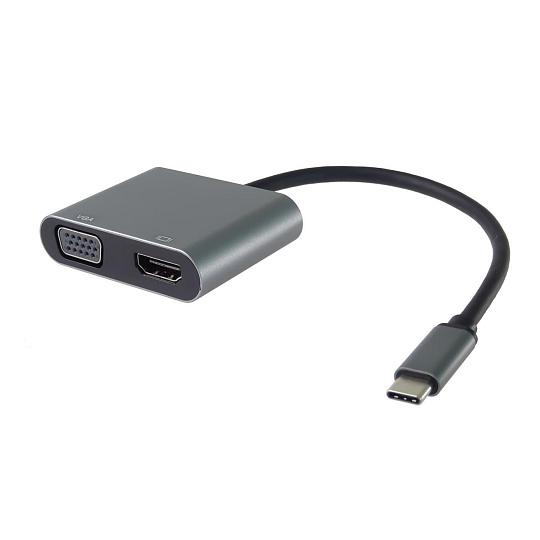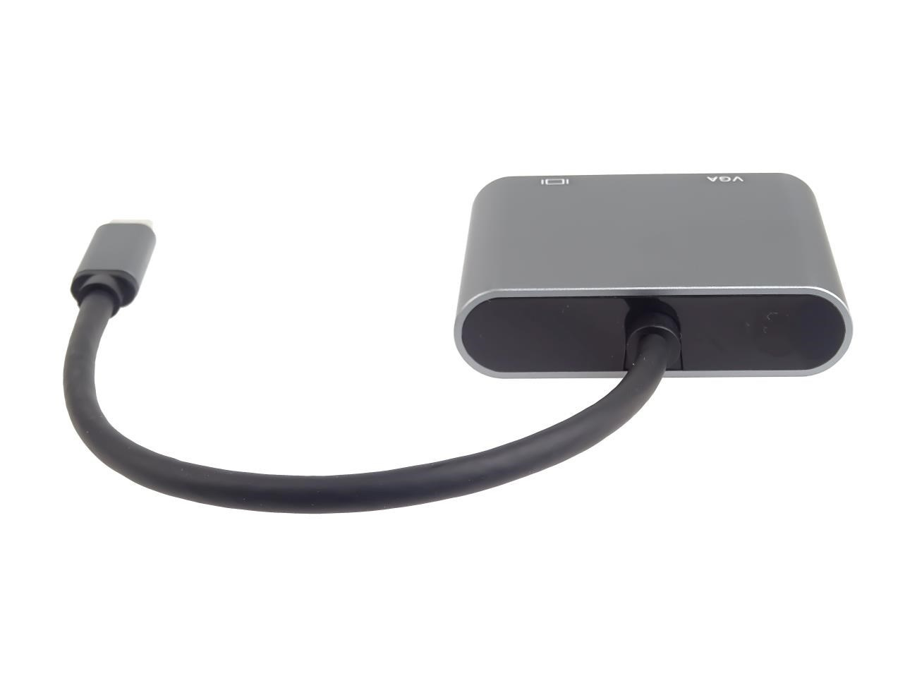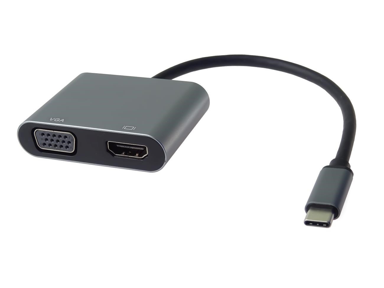 Tento adaptér umožňuje vysoce kvalitní převod videa a zvuku z USB-C konektoru na HDMI a VGA konektor pro dva monitory/TV/projektory. Funguje jako externí grafická karta s dvěma výstupy.
