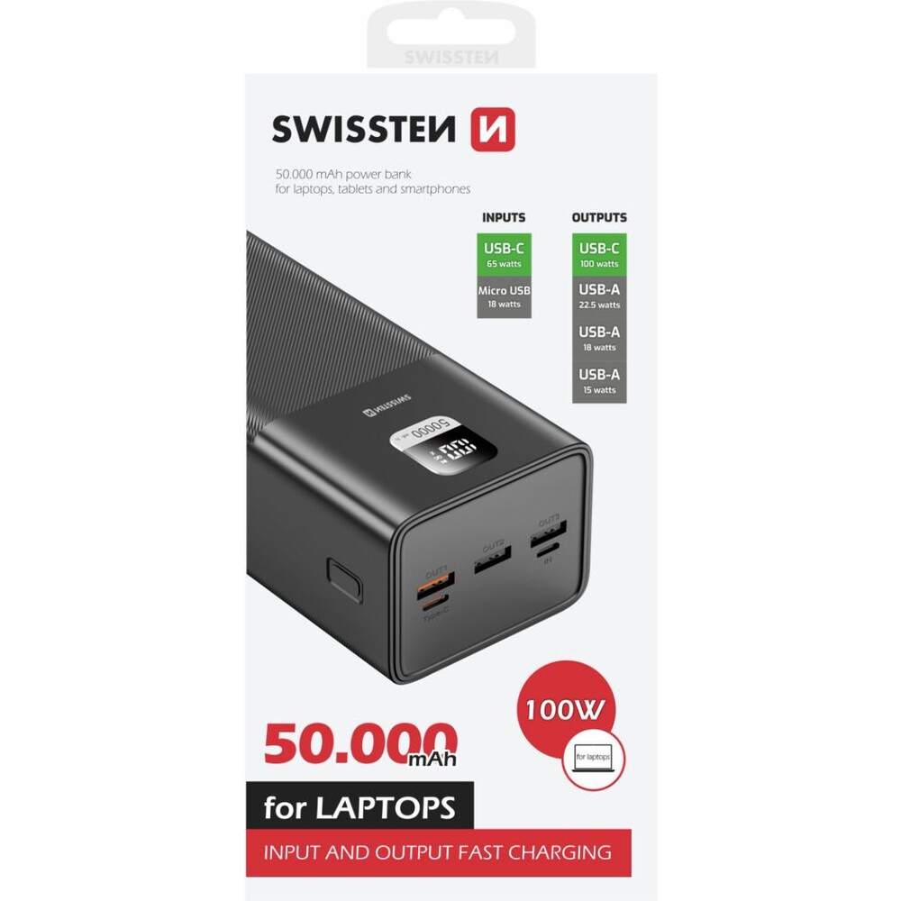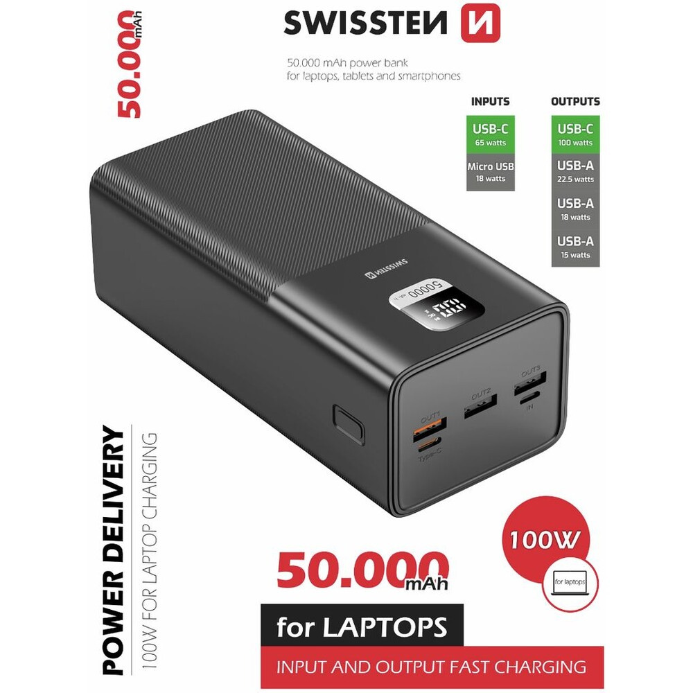 Swissten Power Line powerbanka 50 000 mAh 100W PD černá