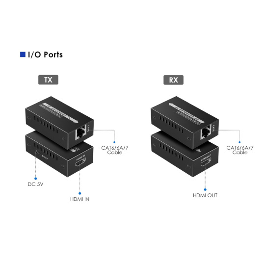 Zařízení umožňuje po jednom kvalitním síťovém kabelu přenést špičkový obraz o vysokém rozlišení 4K@60Hz nebo FULL HD 1080p signál až na 60m.