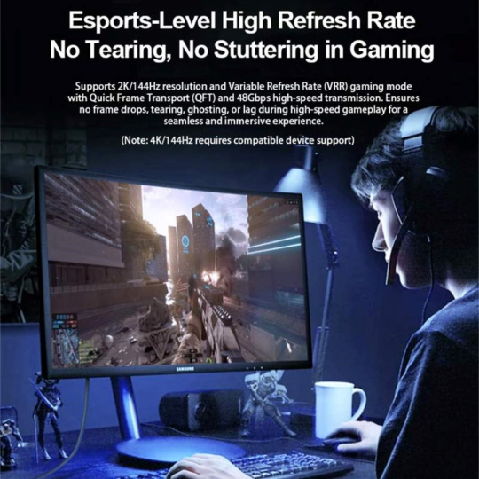 - HDMI 2.1 Ultra High Speed aktivní optický fiber kabel, podporuje HDMI2.1 nebo nižší HDMI2.0 a HDMI1.4