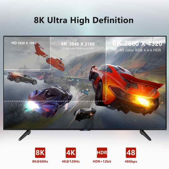 - Podporuje Ultra High Definition rozlišení 8K@60Hz, 4K@120Hz, YUV 4:4:4