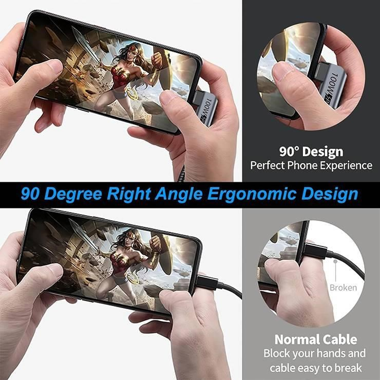 - První konektor: USB 3.2 zahnutý 90° typ C samec