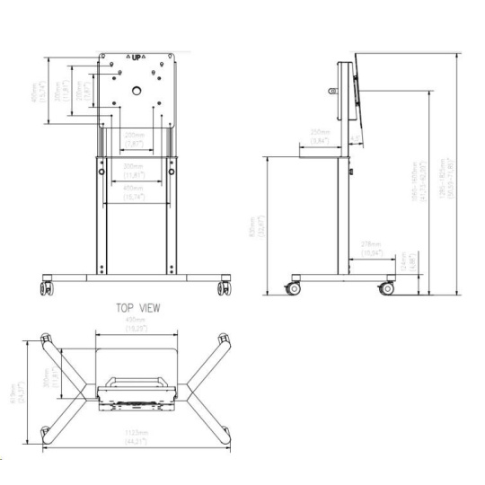 Podporované VESA standardy: • VESA 200x200 • VESA 300x300 • VESA 400x400 • Mobilní vozík s otočnou hlavou - pivot • Ideální pro kanceláře nebo vzdělávací prostory • Podporuje funkce a funkce 55palcového displeje Samsung Flip • Maximální nosnost 70 kg • Atraktivní vzhled a nastavení výšky displeje • Konstrukce vozíku umožňuje vedení kabelů přes hlavu, což činí vedení bezpečným a odolným proti oděru při otáčení displeje. • Bezpečné a trvanlivé.