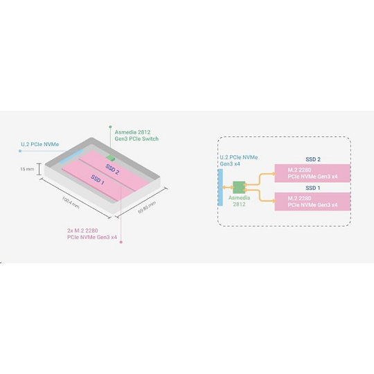 QNAP QDA-U2MP diskový adaptér 2x M.2 NVMe SSD do U.2 PCIe SSD