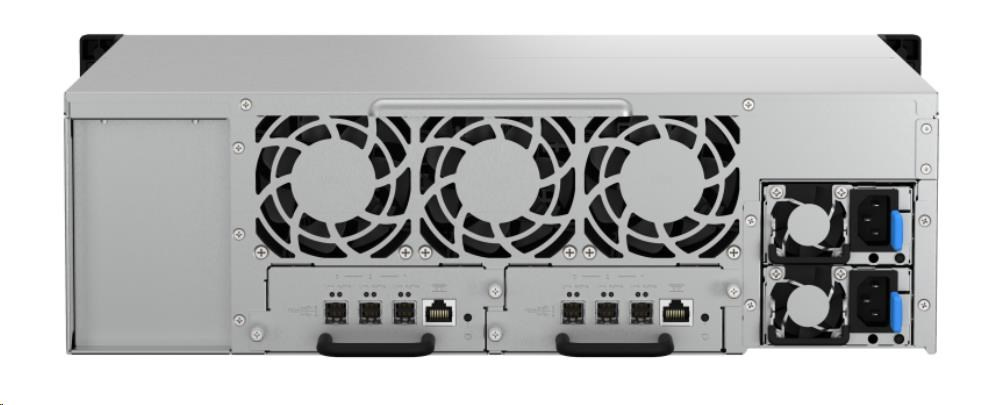 Rozšiřující úložná jednotka 3U s 16 pozicemi TL-R1620Sdc SAS 12 Gb/s je vybavena dvěma řadiči, indikátorem OLED a má provedení pro montáž do racku s krátkou hloubkou. Je ideální pro rozšíření úložné kapacity zařízení QNAP NAS se dvěma řadiči. Oba řadiče mají tři porty Mini-SAS HD (SFF-8644) podporující 12Gb/s SAS a technologii optimalizace šířky pásma Broadcom® SAS DataBolt™. Dvoucestné provedení mini-SAS umožňuje nepřetržitý provoz i v případě odpojení externího kabelu JBOD. Až 7 jednotek zařízení TL-R1620Sdc lze sériově propojit vysokorychlostními kabely Mini-SAS HD, což zajišťuje škálovatelnost a vysokou spolehlivost pro kritická úložiště souborových serverů, virtualizaci, dozorování, středně velká datová centra, multimédia a další.