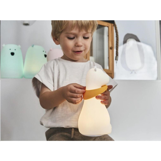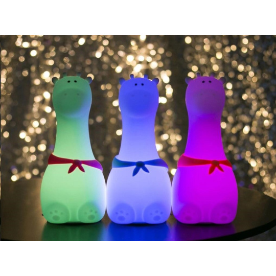 Dětská lampička v podobě roztomilé žirafy s barevnými šátky, vyrobená z měkkého, certifikovaného a zdravotně nezávadného silikonu, je ideální první lampičkou pro děti. Měkká lampička se stane věrným zvířecím kamarádek, který pomůže vašemu dítku s usínáním, doprovodí ho v noci na záchod a s nadšením s ním vyrazí za každým dobrodružstvím. Zapnout, vypnout lampičku, změnit barvu světla, je zcela jednoduché, stačí na lampičku poklepat.