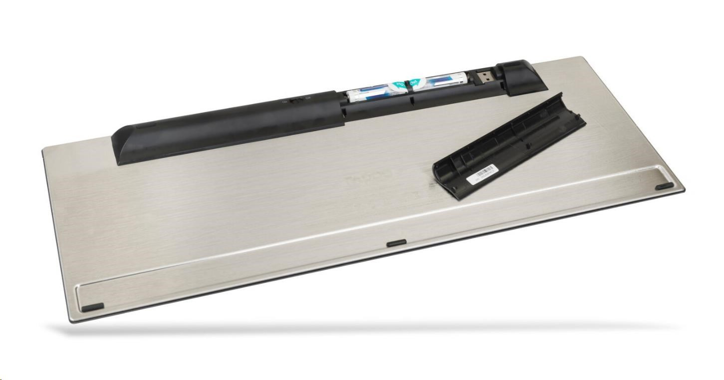 - Obsah balení: Vícerežimová bezdrátová klávesnice, nano USB přijímač, 2 tužková (AA) alkalická baterie (přiložená), stručný návod k použití