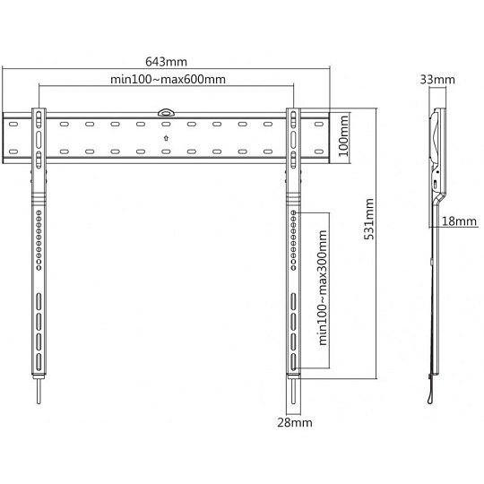 Nástěnný ocelový držák na OLED TV s uhlopříčkou 43"- 80" (109-203cm, různá tloušťka) a hmotností maximálně 40kg. Konzole na zavěšení TV s vodováhou, není vertikálně výklopný, max. vzdálenost od stěny 18mm, materiál ocel, zámek Spring Lock s páskou, cenově výhodné, barva černá. Uchycení VESA: 200x200, 400x200, 300x300, 400x200, 400x300, 600x300..