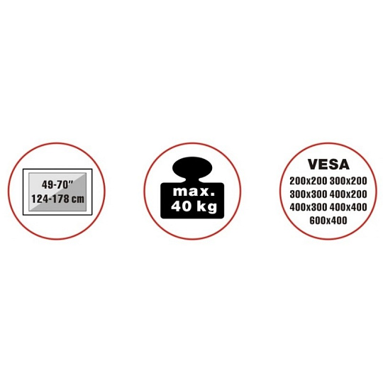 Unikátní televizní stolek na velké LCD TV s uhlopříčkou 49"- 70" (124-178cm) a hmotností maximálně 40kg. Designová tmavá kovová konstrukce s efektním Multicolor RGB LED osvětlením s dálkovým ovládáním. Propracované tvary a vedení kabeláže pro maximální estetický zážitek. Uchycení VESA: 200x200, 300x200, 300x300, 400x200, 400x400, 600x400..
