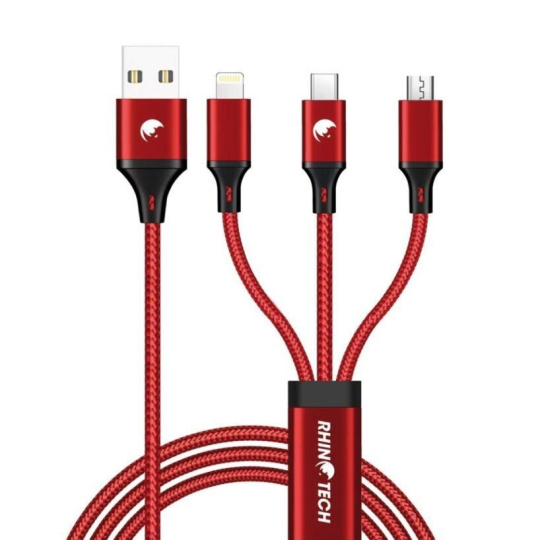 RTACC476 - RhinoTech nabíjecí a datový kabel 3v1 USB-A (MicroUSB + Lightning + USB-C) 1,2m červená