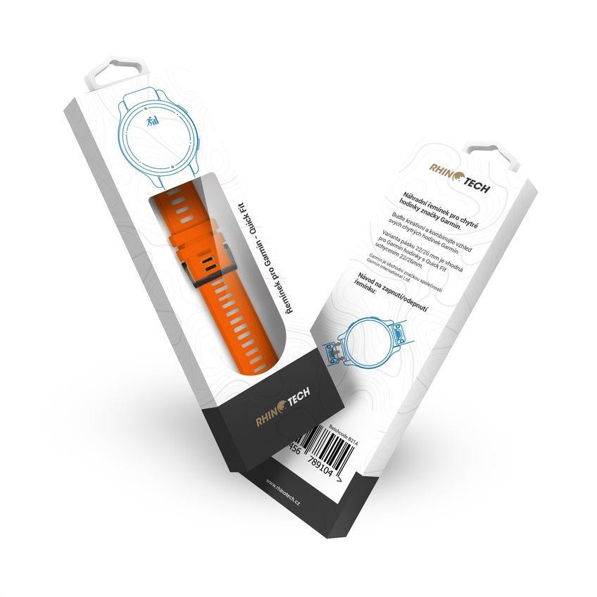 RhinoTech řemínek pro Garmin QuickFit sportovní silikonový 26mm oranžový