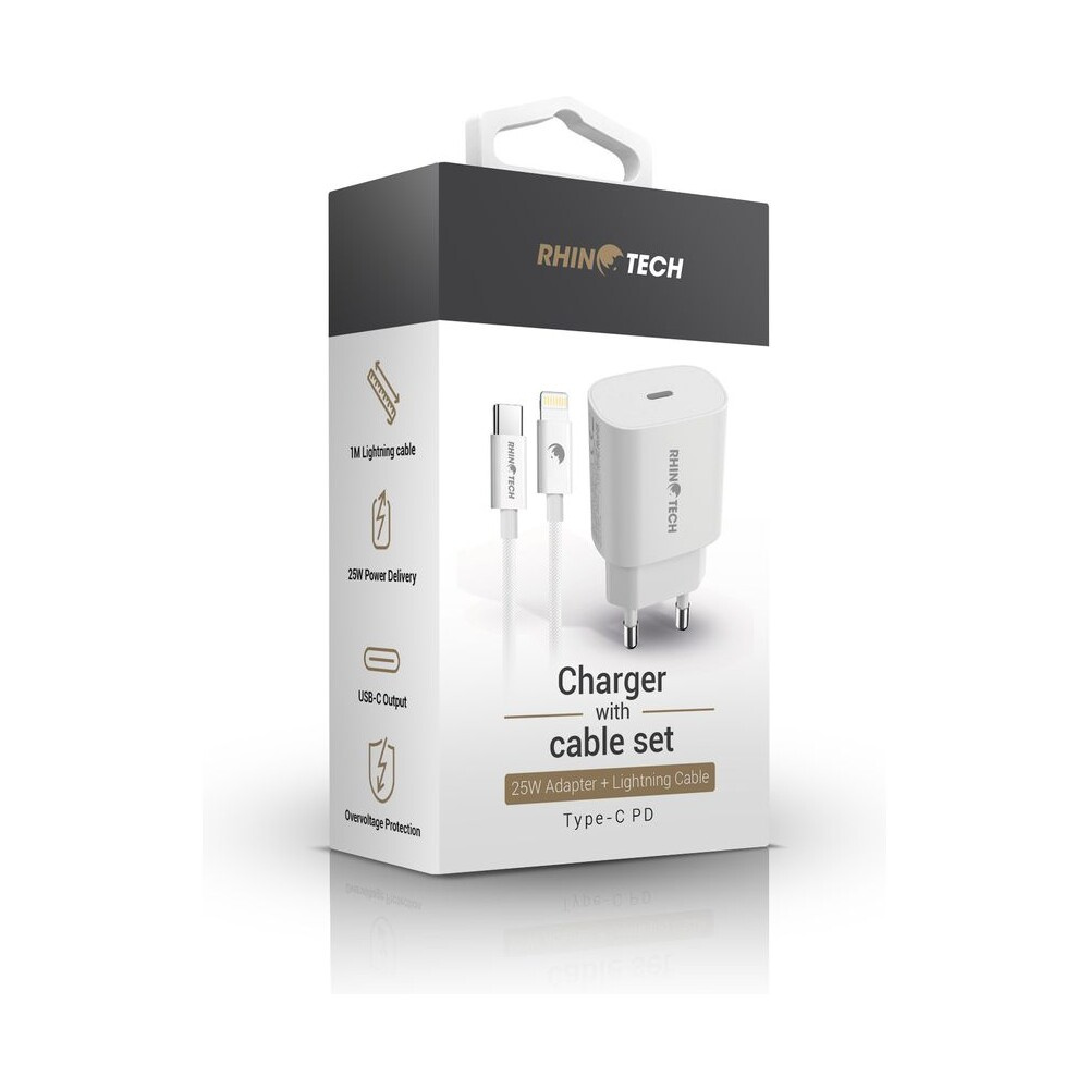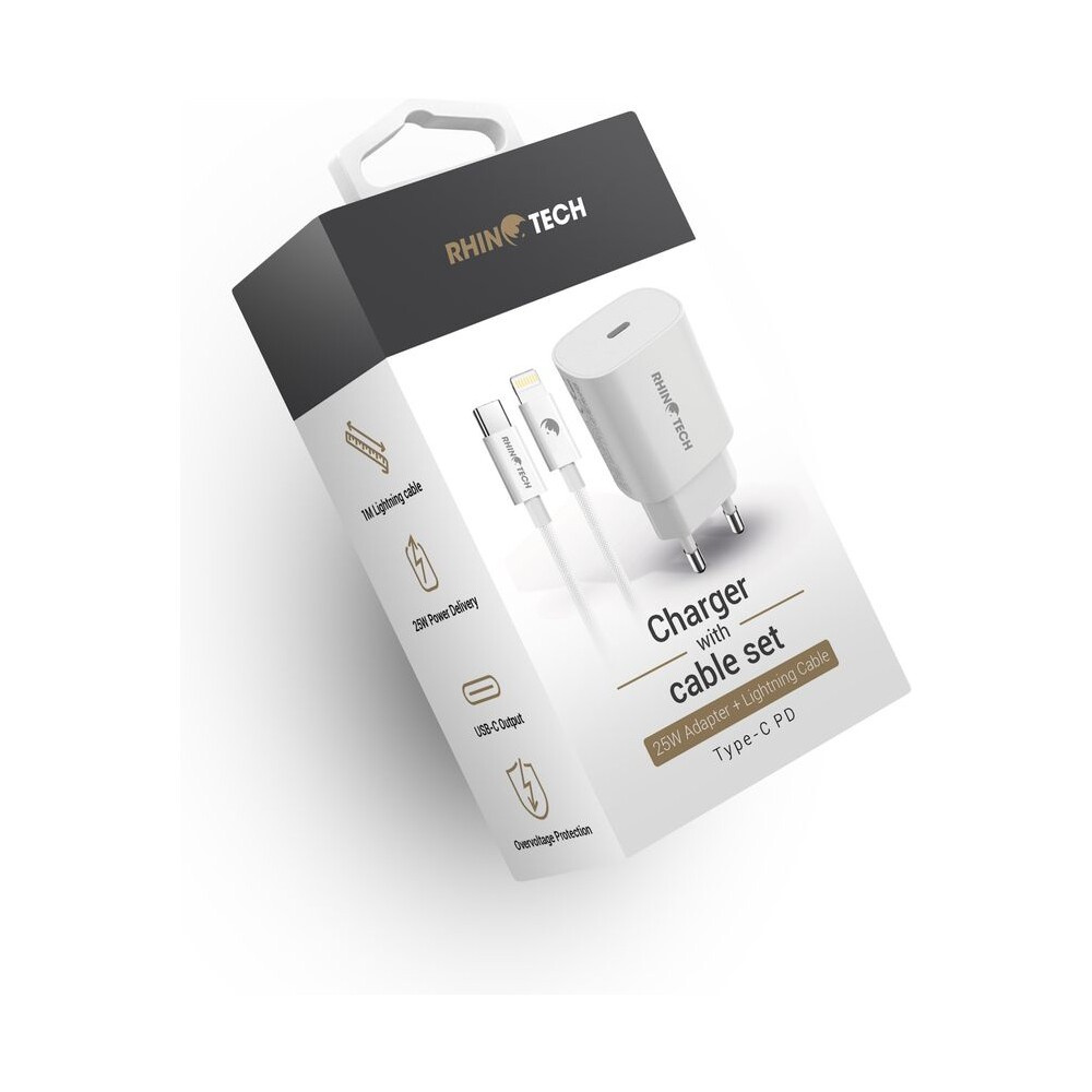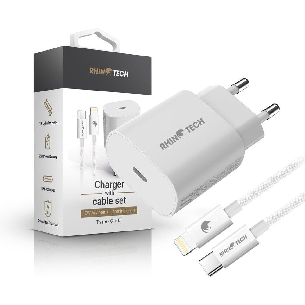 RhinoTech síťová nabíječka 25W PD s kabelem USB-C na Lightning 27W, 1 m bílý