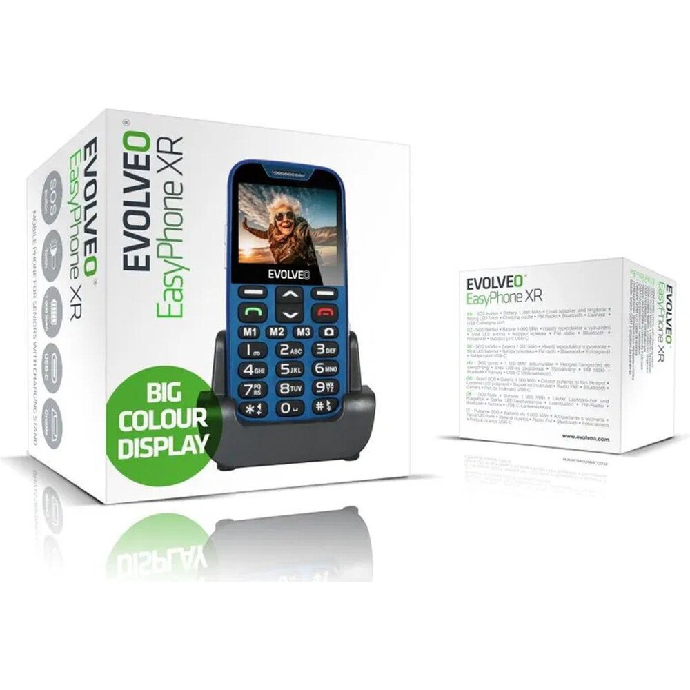 EVOLVEO EasyPhone XR mobilní telefon pro seniory s nabíjecím stojánkem modrá