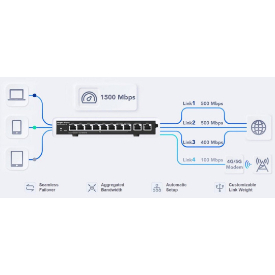 Registrace dealerské ceny: https://docs.google.com/forms/d/1sWwsswsbBk36eZx4CJrfl47qUvrORQyYz7kMjrt2f_c/prefill Popis produktu Ruijie RG-EG310GH-P-E je kabelový Gigabitový router s PoE, dostatečným VPN výkonem pro obsloužení poboček a vzdáleně pracujících pracovníků v rámci firmy. Bezpečný a spolehlivý router s vlastním webovým managementem, možností správy přes Ruijie Cloud odkudkoliv, blokování obsahu podle typu aplikace, inteligentní Multi-WAN load balancing s možností využít až 4 WAN porty zároveň. Router nabízí 1 Gigabitovými WAN port, 6x Gigabit LAN, 3 Gigabitový LAN/WAN porty, celkový výkon v NATu 1.5 Gbps a 802.3af/at PoE na prvních 8 portech s celkovým PoE budgetem 130W. Router pro přístup do lokální sítě umožňuje i několik možností VPN serverů a to konkrétně: IPsec, PPTP, L2TP a OpenVPN. Limity VPN • IPsec: 230 Mbps, max. 64 tunelů • L2TP: 640 Mbps, max. 64 tunelů • OpenVPN: 100 Mbps, max. 64 tunelů Obsah balení • Zařízení • Napájecí adaptér 52V / 2.4A • Napájecí kabel Technické parametry Konektory a rozhraní Rychlosti WAN:(1) 10/100/1000Mbps Možnost více WAN:Ano Rychlost LAN:(6) 10/100/1000Mbps + (3) 10/100/1000Mbps LAN/WAN Gigabit LAN:Ano Napájení Typ napájení:DC konektor Typy PoE:PoE-Out (pouze) Podporované PoE-Out standardy:802.3af, 802.3at Počet PoE Out portů:8 PoE budget [W]:110 Max. spotřeba energie [W]:130 Napájení přes konektor/svorkovnici:54V / 2,4A Fyzické charakteristiky Provedení:Desktop Ventilátory:Bez ventilátoru Šasi:Kovové Tlačítka:Reset Provozní teplota [°C]:0 až 40 Šířka [mm]:202 Výška [mm]:28 Hloubka [mm]:108 Hardware Frekvence CPU [MHz]:1350 Počet CPU jader:2 Obecné Propustnost NAT [Mb/s]:1500 Propustnost VPN IPsec VPN [Mb/s]:230 Software Podporované VPN:PPTP, L2TP, IPSec, OpenVPN Web management:Ano Management:Webové rozhraní, Ruijie cloud Podpora IPv6:Ano Výchozí IP adresa:192.168.110.1 Výchozí jméno a heslo:Nastavuje se při prvním spuštění.