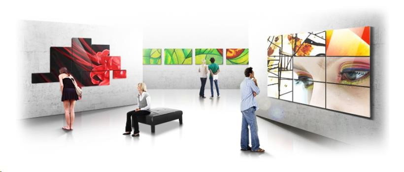 Toto řešení poskytuje úplnou svobodu při navrhování a formování jednotlivých obrazovek do formálních nebo neformálních obrazců, které můžete libovolně podle potřeby modelovat. Při vytváření videostěn je možné kombinovat libovolné druhy velkoformátových obrazovek Samsung bez ohledu na model, velikost, rozlišení nebo šířku rámečku.