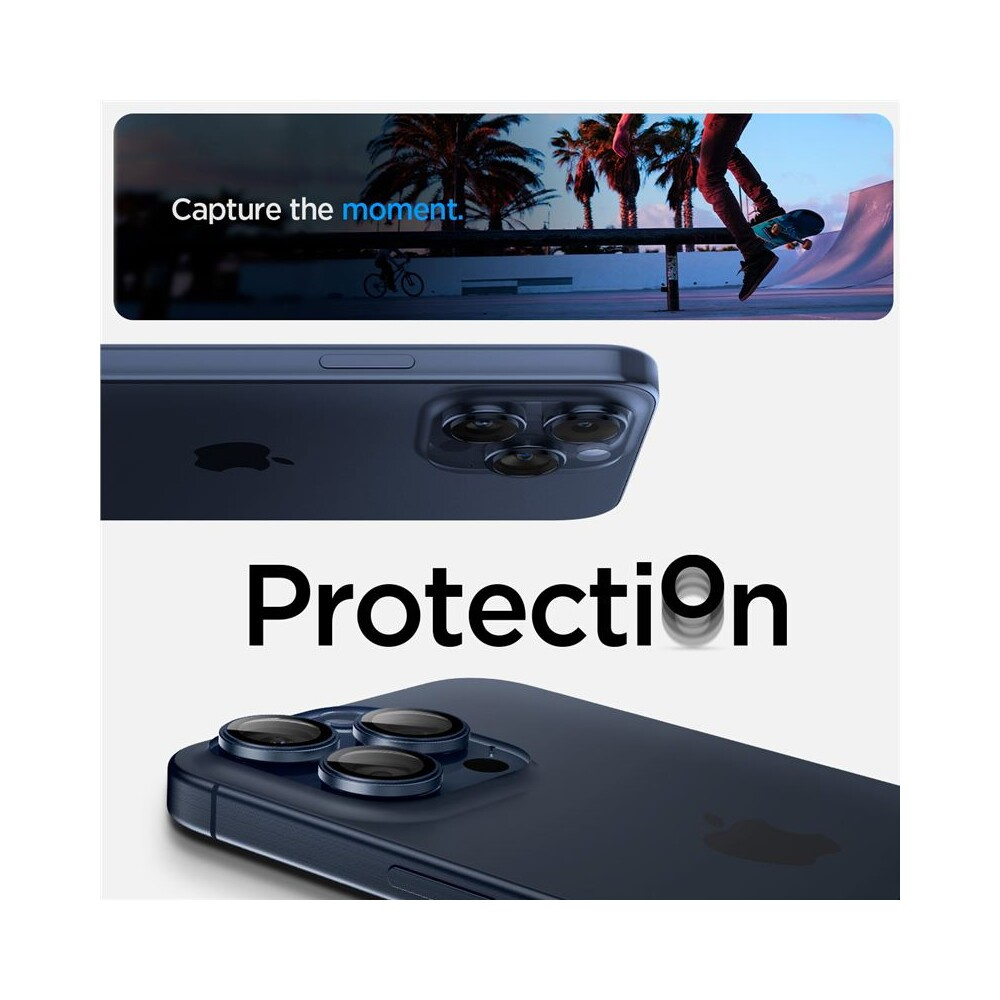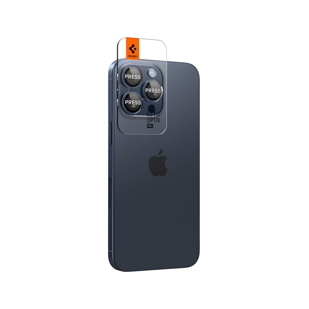 Spigen Glass tR EZ Fit Optik Pro 2 Pack sada skel iPhone 17-15 Pro/17-15 Pro Max modrý titan