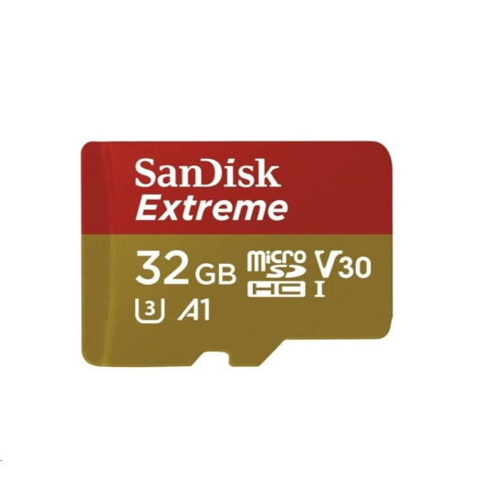SanDisk MicroSDHC karta 32GB Extreme (100MB/s, Class 10 UHS-I V30, pro akční kamery) + adaptér