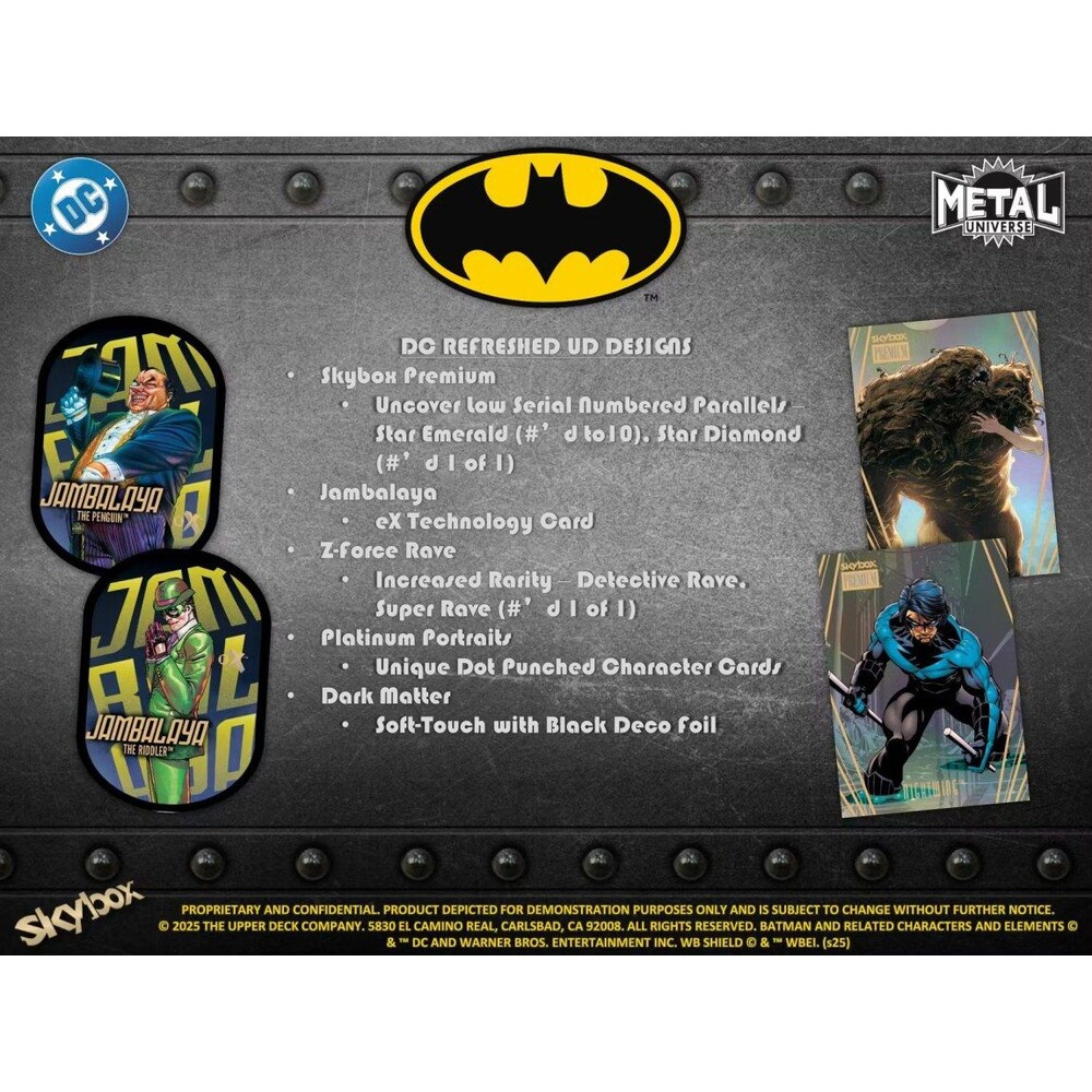 Sběratelské karty 2025 Upper Deck Batman Skybox Metal Universe Hobby Box