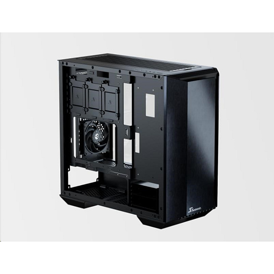 The state-of-the-art Seasonic SYNCRO Q7 Series is a mid-tower ATX chassis that features an aluminum body and a tempered glass panel on one side and the Seasonic SYNCRO CONNECT Module on the other. This setup can accommodate powerful hardware and provides versatile cooling and ventilation options. The SYNCRO CONNECT Module functions as a cable management hub, to which the components are directly connected with generally shorter cables. This setup simplifies cable routing and allows for a clean look on both sides of the case.
