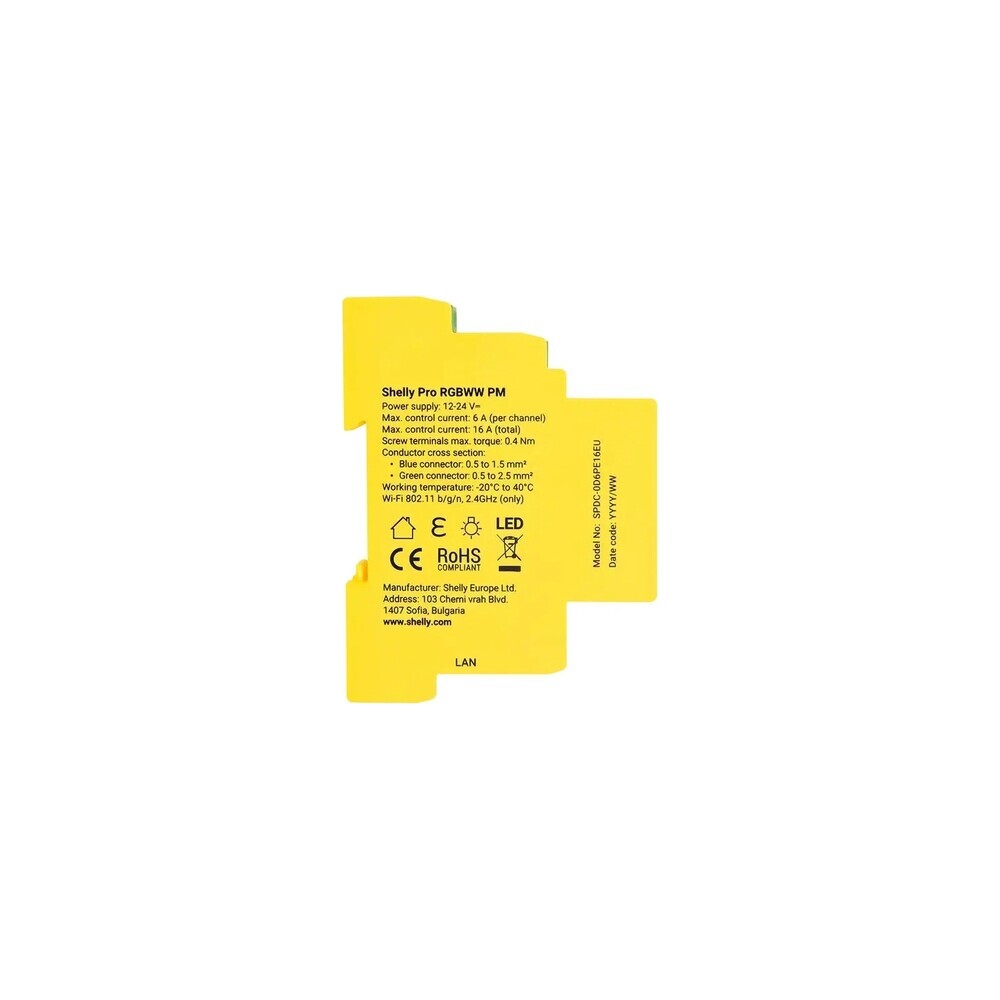 Shelly RGBWW Pro WiFi modul řízení LED pásků žlutý
