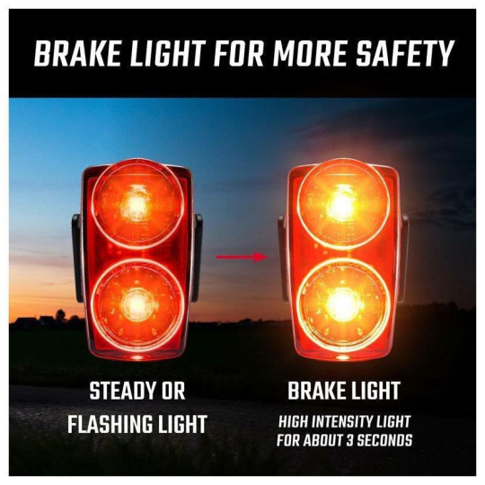 Integrované brzdové zadní světlo zvyšuje bezpečnost pro všechny účastníky silničního provozu. Světlo Buster RL 150 při každém brzdění výrazně zvýší svou intenzitu svícení po dobu 3 sekund.