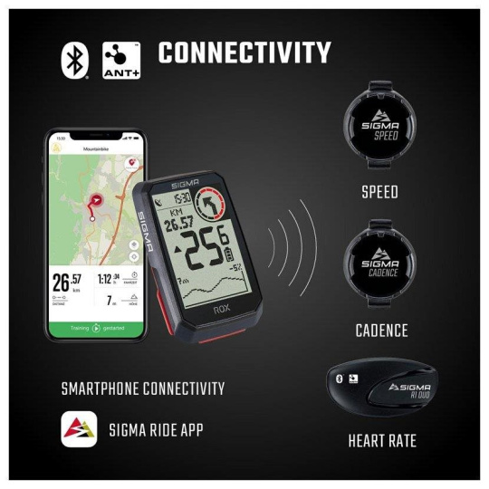 Kdo si přeje získávat ještě další nebo přesnější data, může díky funkcím ANT+ a Bluetooth připojit k ROX 4.0 také externí snímače jako jsou snímač rychlosti a snímač kadence.