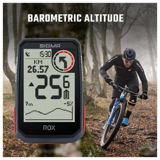 Opravdovým tahákem cyklopočítače ROX 4.0 je integrované barometrické čidlo. Díky barometrickému měření dodává cyklistům spolehlivé informace ohledně výšky, stoupání a klesání, a umožňuje tak přesný záznam trasy. Na cyklopočítači ROX 4.0 lze zobrazit i graf nadmořské výšky. Nadmořskou výšku na začátku trasy je možné kalibrovat automaticky pomocí GPS nebo manuálně.