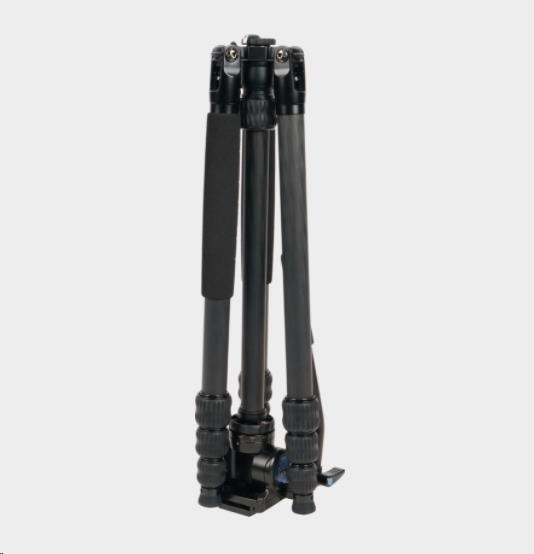 Profesionální stativ Sirui Traveler VC s video hlavou VA-5 určený pro kameramany a malé lehké pozorovací dalekohledy. Stativ je vyroben z uhlíkových vláken.