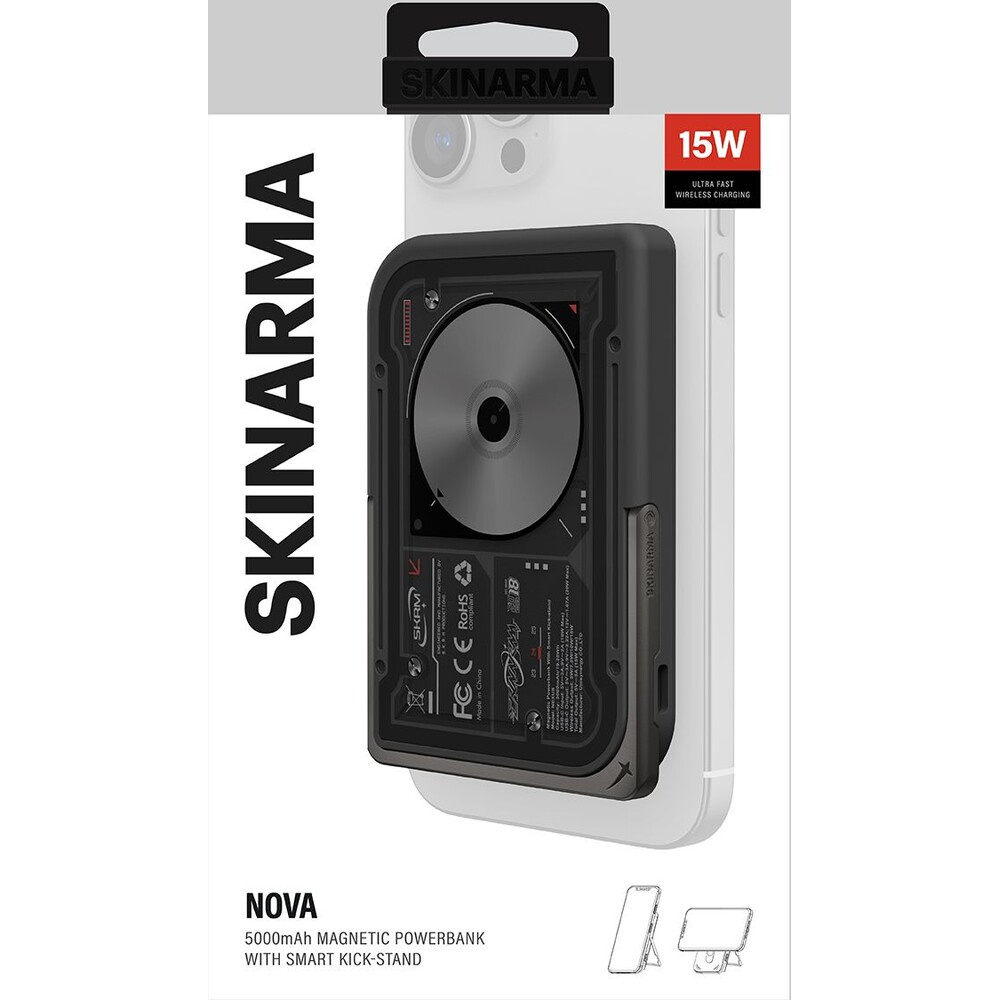 SKINARMA Nexus Nova MagSafe powerbanka se stojánkem, USB-C, PD (5000 mah) černá