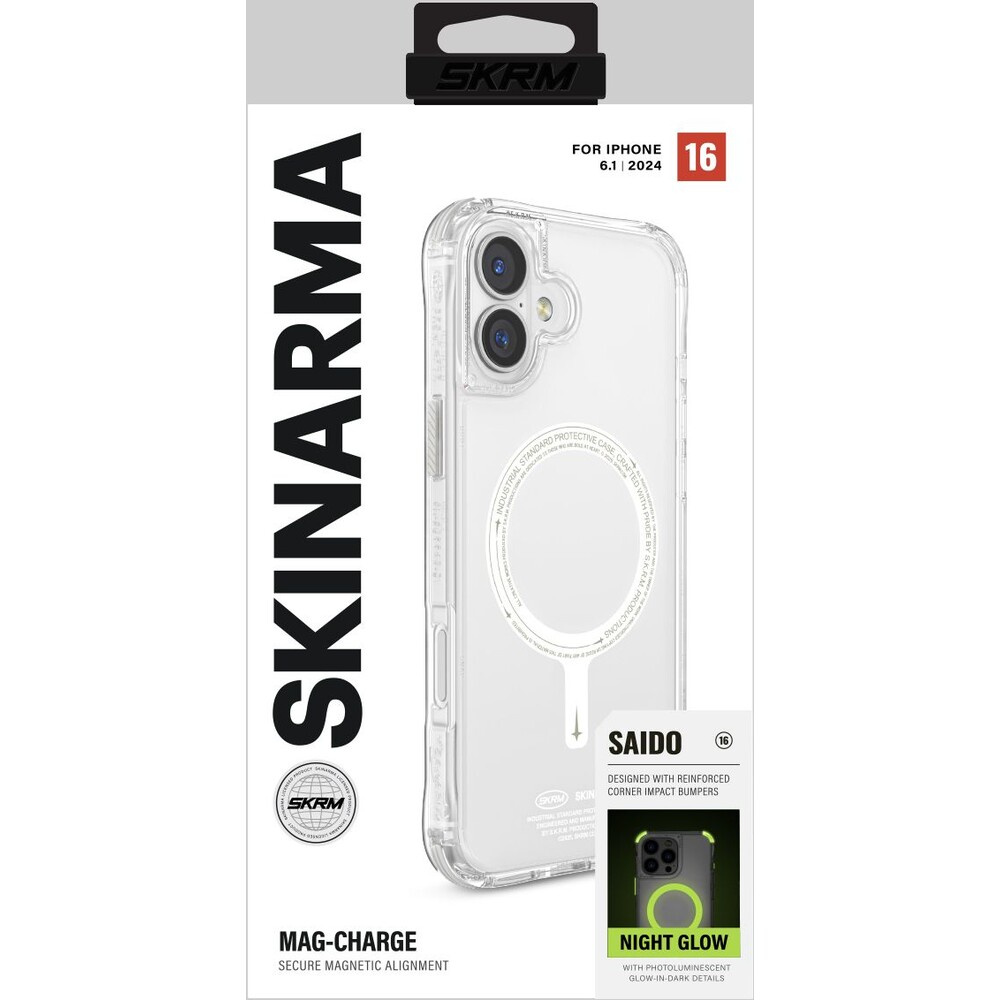 SKINARMA Saido Niteglow Mag-Charge kryt iPhone 16 čirý