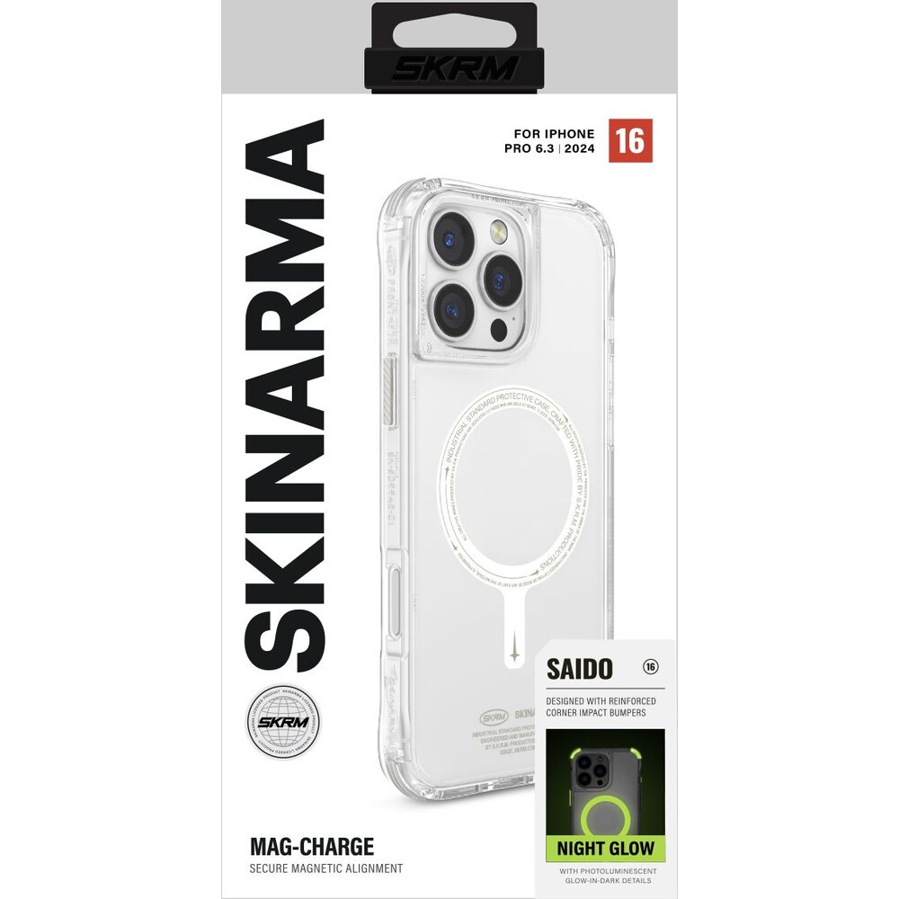 SKINARMA Saido Niteglow Mag-Charge kryt iPhone 16 Pro čirý