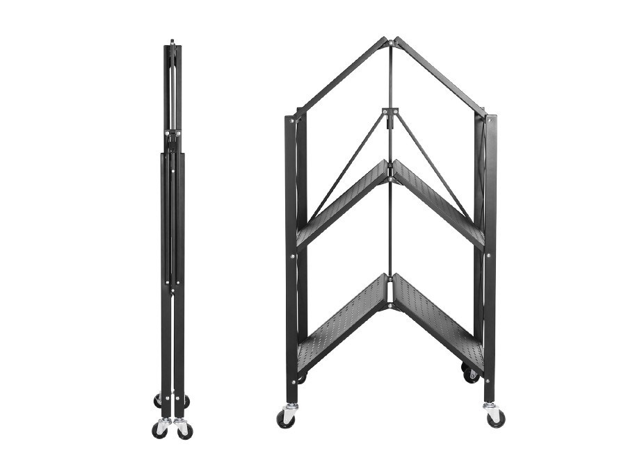 Regál Fiber Mounts M8C97 Praktický úložný regál s 3x velkými policemi nabízí dostatek prostoru jak pro drobnosti jako jsou knihy, dokumenty, hračky, tak i pro velká zařízení jako jsou mikrovlnky, tiskárny a nářadí. Rám je vyroben z kvalitního kovu, díky kterému je regál stabilní a má vysokou nosnost. Boční mřížky zabraňují pádu předmětů. Skládací: Stojan lze snadno složit a ve složeném stavu zabírá málo místa. Nevyžaduje montáž - police je již smontovaná, takže ji můžete používat ihned po vybalení. Všestranná police: Díky univerzálnímu designu lze polici umístit kamkoli je potřeba. Hodí se jak do koupelny, tak do kanceláře nebo dílny. Možnosti využití jsou nepřeberné. Snadná přeprava: 4x kolečka umožňují pohodlný přesun mezi místnostmi. Integrovaná brzda zajišťuje vyšší bezpečnost. Technické údaje: - Nosnost 40kg - Použití: Univerzální police - Funkce skládání - Boční rošty - Stabilní konstrukce rámu - Rozměry: 710 mm x 380 mm x 860 mm - Materiál: Kov - Počet polic: 3 - Počet koleček: 4 - Barva: Černá.