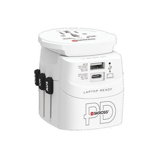 SKROSS cestovní adaptér PRO Light USB AC45PD - World, UK+USA+AUS/CN, univerzální, uzemněný, USB A+C 45W