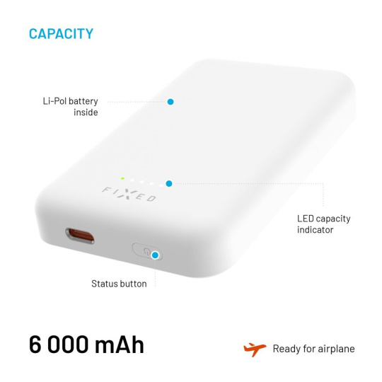 FIXED MagZen powerbanka s bezdrátovým nabíjením a Magsafe, 6000 mAh, bílá