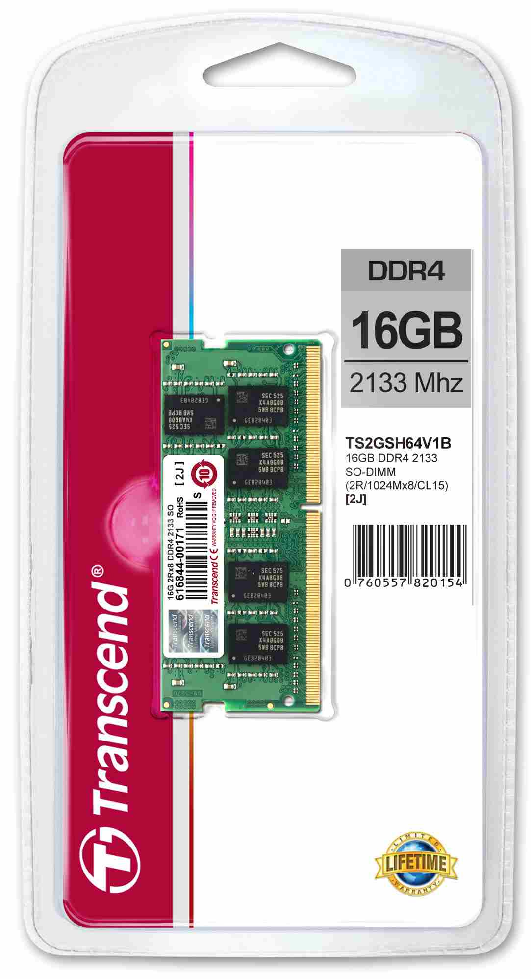 TRANSCEND SODIMM DDR4 16GB 2133MHz 2Rx8 CL15 Retail