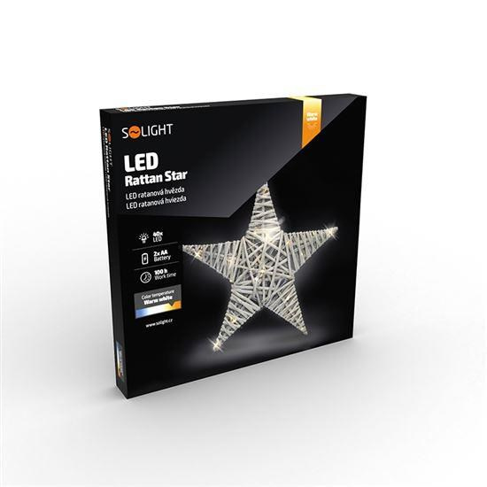Solight LED ratanová hvězda, 40x LED, 2xAA, 40cm