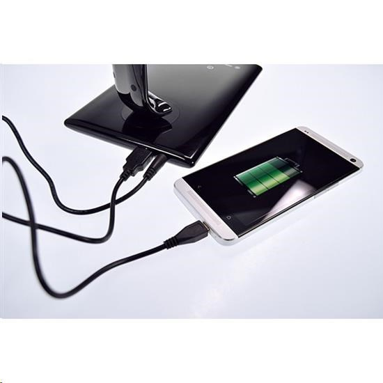 Solight LED stolní lampička stmívatelná, 12W, volba teploty světla, USB, černý lesk