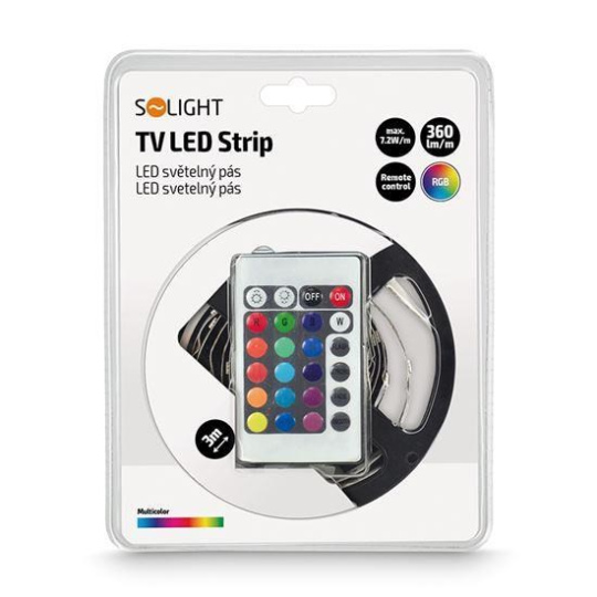 Solight LED světelný pás, RGB, 3m, sada s 12V adaptérem a dálk. ovladačem, 7,2W/m, IP20