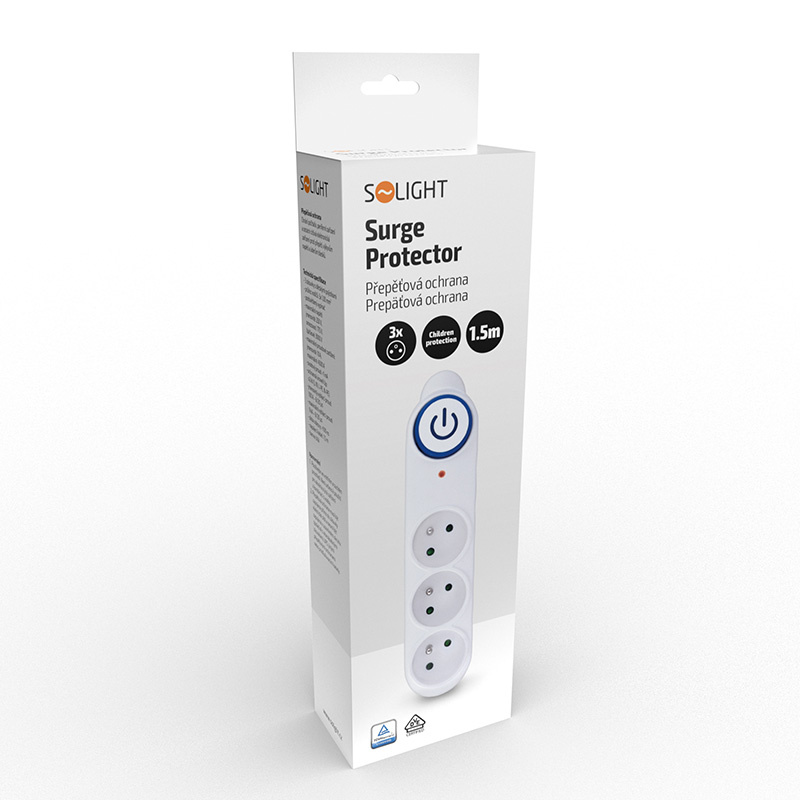 Solight přepěťová ochrana, 3 zásuvky, 1,5m, bílá