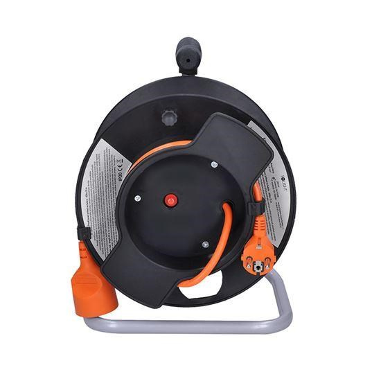 Maximální zátěž 3680 W (16 A při 230 V~) zajišťuje bezpečný provoz pro většinu běžných zařízení. Ergonomické madlo umožňuje snadné přenášení a rychlé navinutí kabelu. Ideální pomocník pro domácí kutily, údržbu nebo drobné práce kolem domu.