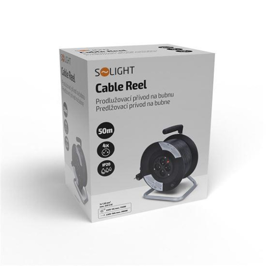 Solight prodlužovací přívod na bubnu, 4 zásuvky, 50m, černý kabel, 3x 1,5mm2