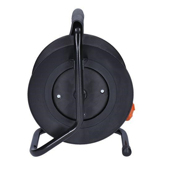 PVC kabel s vodiči o průřezu 3×1,5 mm2 je vhodný pro vnitřní a suché chráněné prostory. Buben je vybaven čtyřmi zásuvkami s dětskými pojistkami, navíc i tepelnou pojistkou, která přeruší napájení v případě přetížení nebo při použití bez úplného odvinutí kabelu. Barevné odlišení kabelu od okolního prostředí zvyšuje bezpečnost při práci.