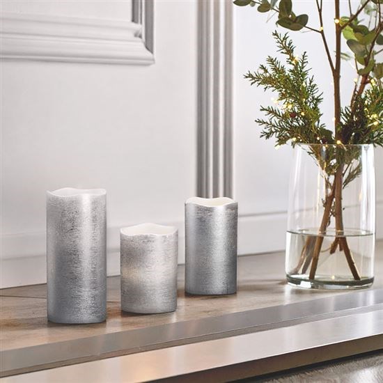 Solight sada LED svíček, 3x svíčka, 10/13/16cm, stříbrná barva, 3x AAA