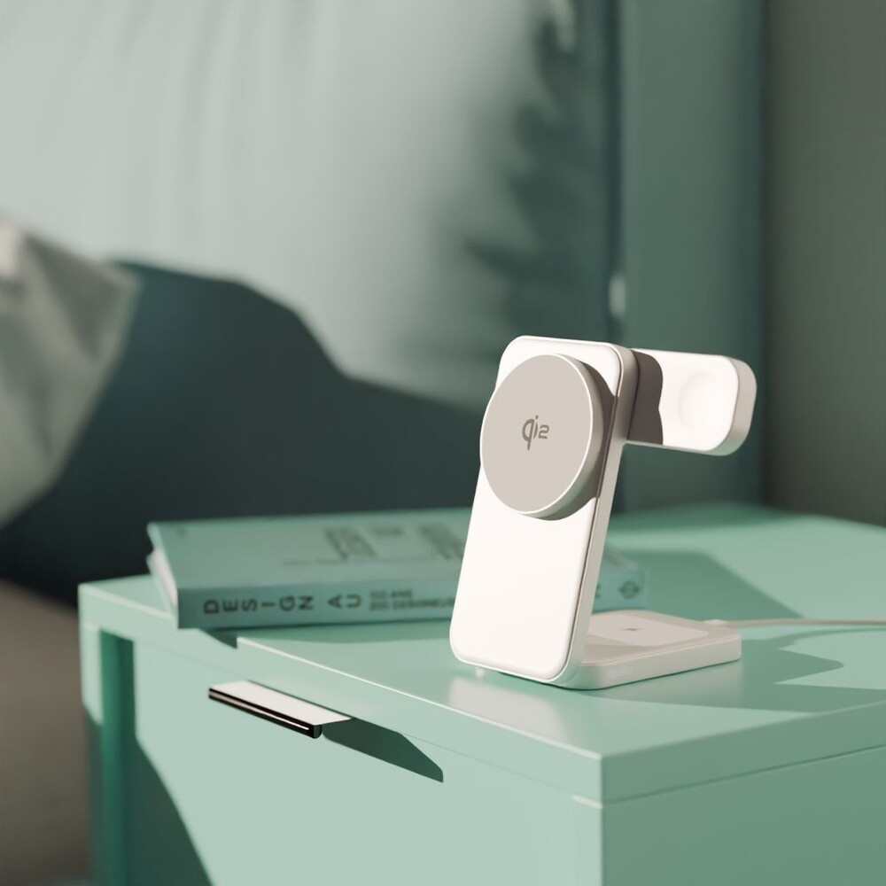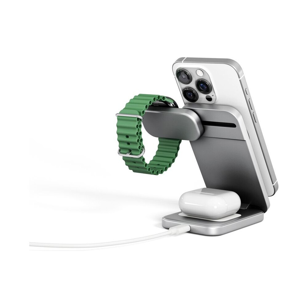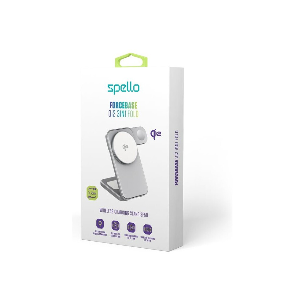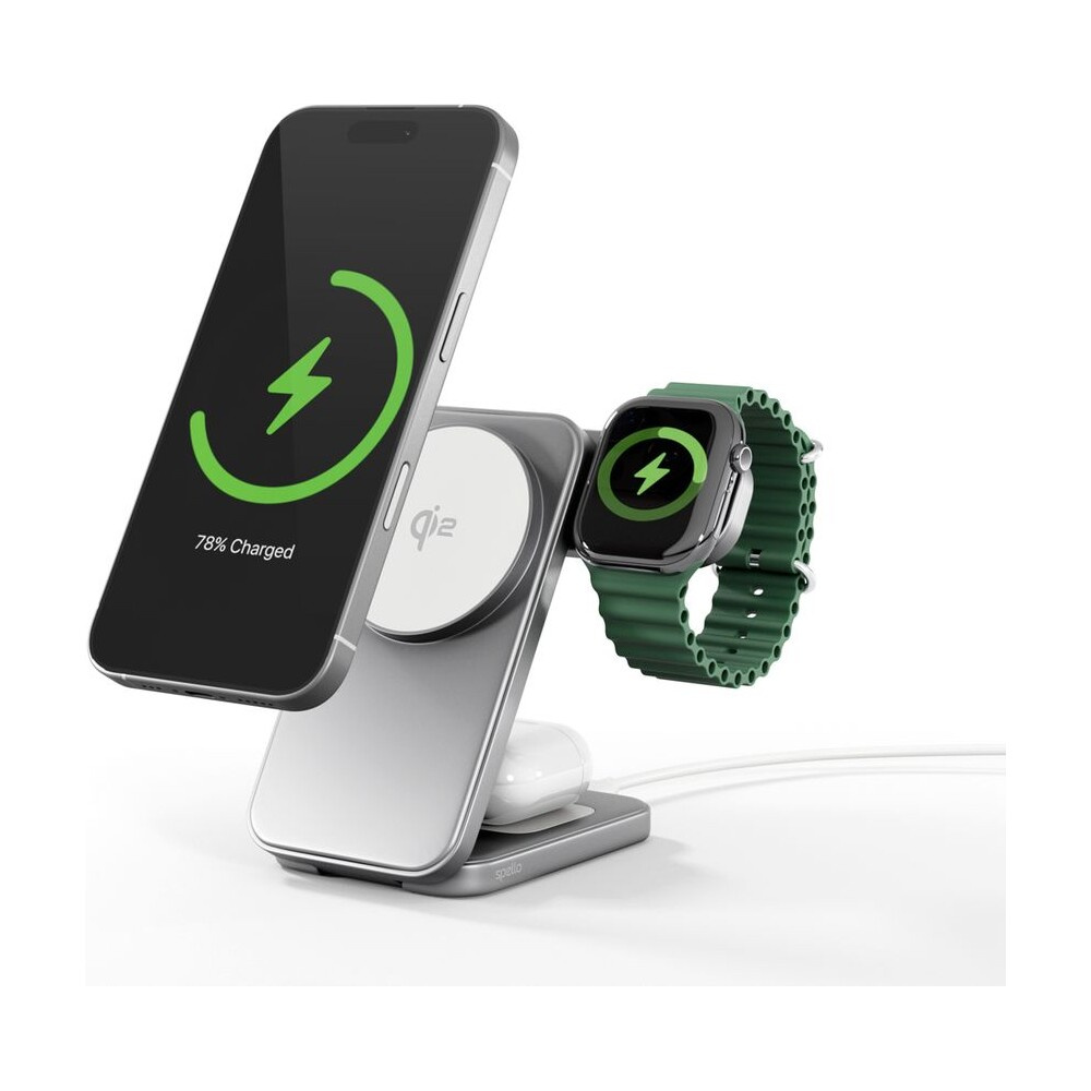 Spello ForceBase Qi2 3v1 Fold bezdrátový nabíjecí stojánek stříbrný