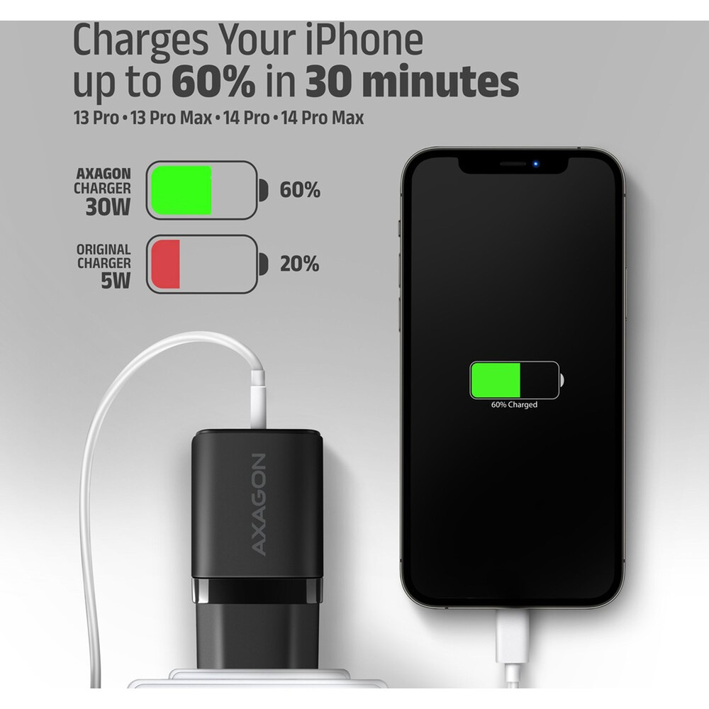 AXAGON ACU-PQ30 nabíječka do sítě 30W USB-A + USB-C černá
