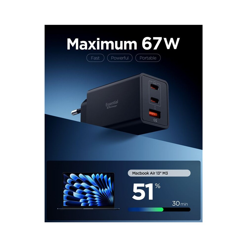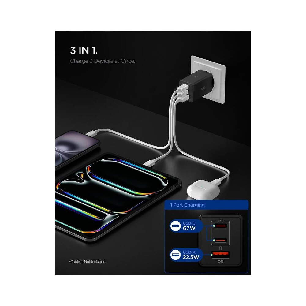Spigen Essential 67W USB-C/USB-A nabíječka (EE673EU) černá