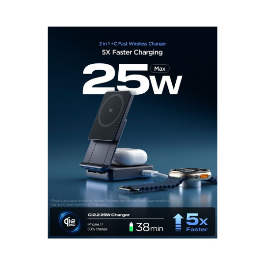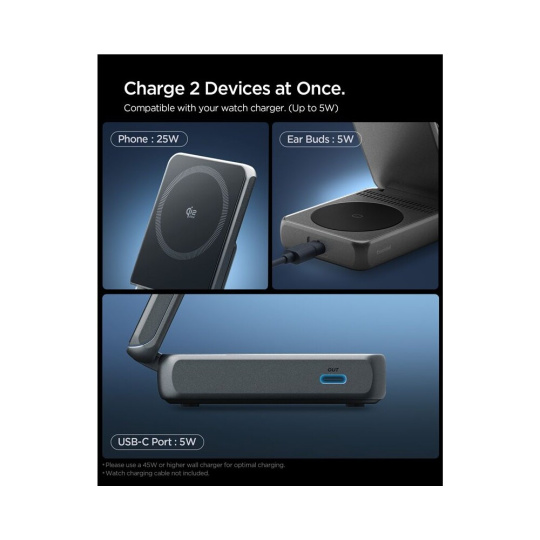 Spigen Essential MagSafe 2in1+C Qi2/MagSafe nabíječka (25W) černá